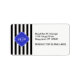 Svartvitt Rand Mönster, Kobalt Blue Quatrefoil 3 Initial Monogram A snyggt, modern, chic strimlade mönster i svartvitt. Anpassa den koboltblå quatrefolieetiketten med tre inledande monogram eller ändra designen för att lägga till ditt namn eller annan text. (Klicka på "Anpassa" om du vill ändra teckensnittet, justera teckenstorleken, färg, lägga till ytterligare fält osv.) Om du vill ha den här designen/etiketten i annat färg släpper du bara ett e-postmeddelande. 2013 ©FantabulousPatterns Alla höger reserverade