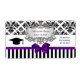 Svart vit Rand Damask Lila Bow Ribbon Party Vattenflaska-etikett - Studentfest A-design med ett svart och vitt dammmönster parat med ett svart och vitt strippat mönster. Det är förskönat med en guldplatta som ser ut som ett armband. Observera att detta inte innehåller något väv, band, metall, prägling osv. Det är en grafisk design eller ett foto som överförs till den underliggande produktens material. 2013 ©MyPartyUtformar alla höger reserverade