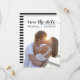 Eleganten sparar datumet för det platta fotokortet med vismisk kalligrafi-skript och svartvitt rand mönster. Detta tidlösa spara datum meddelande kommer att bli perfekt för alla bröllop-teman.