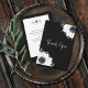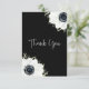 Elegant svartvit anemonblommor och löv mot svart bakgrund, det här tackkortet har plats för skriva eller utskrift av personligens meddelande på baksidan. MATCHING-objekt i vår samling.