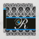 BLACK WHITE BLUE DAMASK MONOGRAM Sapphire Guld Inbjudningar