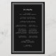 Elegant, ett minimalistiskt bröllop-ceremoniprogram för svartvit budget har en enkel modern utformning med en dubbla som ramar in gräns i skarp vit på en sofistikerad svart bakgrund. Traditionell, klassisk formulering ger en tidlös sofistikering. Anpassa ceremonin i bröllop till dina gäster i trendigets skript och brev. Kortets baksida matchar med vita bokstäver på en svart bakgrund och allt handlar om din bröllopsfest. Om du vill ha optimala resultat ersätter du mallinformationen med din egen information som lämnar mellanrummet mellan stycken som i exemplet. Kapitalisera och använda allt nedre fodral där så anges. Kontakta mig gärna på invitationsuites@gmail.com eller med meddelandefunktionen om du har frågor om detta eller någon av våra produkter eller har en begäran från anpassningsbar färg.
