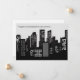 Our company has moved to a new location. Modern, custom city skyline at night drawing in black and white on customized moving announcement cards for your business. Chic corporate relocation card for professional marketing to clients and customers. .