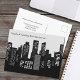 Our company has moved to a new location. Modern, custom city skyline at night drawing in black and white on customized moving announcement postcards for your business. Chic corporate relocation postcard for professional marketing to clients and customers. .