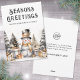 Send warm wishes to clients, partners, or employees with this charming business Christmas card featuring a festive watercolor snowman design. The front showcases a delightful black and white snowman wearing a top hat and gold scarf, surrounded by golden accents, festive trees, and presents—bringing a whimsical and cozy winter feel.