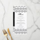 Den här designen har ett mönster för dämpning av svartvit vintage. Personligens kalligrafi-typografi skapar en perfekt-fusion av chic och elegans. En enkel bröllop-menykortsdesign med anpassningsbar minimalistisk menykortsdesign med modern svartvitt. Det finns också möjlighet att matcha bröllopsinbjudningar och kontorsartiklar.