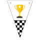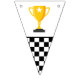 Fira med den här Grattis på födelsedagen-banderollen! Med klassiska svarta och vita tävlor och fet stil är det perfektens dekoration för alla bilmatade födelsedagsfester i tävling. Den här banderollen är en del av en samling födelsedagsfester med koordinerande artiklar tillgängliga.