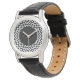 Svart och vitt cirkelrund mönster omger varandra i denna unika geometriska klocka. Mittpunkten är solid svart. Mycket utmärkande och öga fångande!