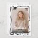 This fun, bold graduation announcement and invitation set features black editable hand drawn doodles including bows, books, stars, and grad caps, surrounding a portrait photo. Designed in a playful sketch layout with a hand-drawn feel, it’s perfect for grads who love a modern twist with a personal edge. Great for artsy, coquette, or indie-inspired themes.