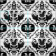 Black White Damask Monogram Namn, klassisk och Chi Tyg