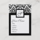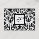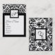 BLACK WHITE DAMASK SQUARE MONOGRAM, champagne meta Visitkort