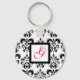 BLACK WHITE DAMASK SQUARE ROSA FUCHSIA MONOGRAM NYCKELRING