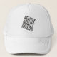 Add an edgy, modern touch to your outfit with this black and white distorted reality typography trucker hat. Featuring bold, distorted text on a classic trucker hat style, it’s perfect for casual wear, street fashion, music festivals, or art-inspired looks. The monochrome design pairs effortlessly with any outfit, while the adjustable fit ensures comfort for all-day wear. Ideal for fans of minimalistic yet striking designs, this hat makes a statement while keeping your style practical and on-trend. Perfect for gifting or elevating your everyday accessories collection.