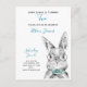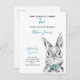 Din pojke går två! Inbjudan dina speciella gäster med det här vackra vykortet med en handmålad kanin med vattenfärg, i blått, svart och vitt. Baby, "Turning Two" och datumet står i blått skript, typografi och personlig i en chic, modern svart sans serif. Copyright Elegant Inbjudan, alla höger reserverade.