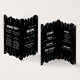 Här är ett svart och vitt bröllopsprogram med en omgivande vit eld som brinner över sidorna i det svarta programmet. Perfekt för skämt, alternativt, gotiskt eller monokrom temat bröllop och särskilda tillfällen.