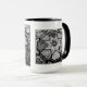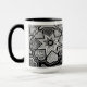 Chic FolkArt-inspirerade svarta och vita mugg med en intrikat mönster av hjärtan och stjärnor. Underbar för alla tillfälle. En del av "Hearts Fullt of Kärlek"-samlingen.