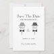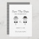 Meddela ditt kommande firande med det här snyggten svarta och vita gaykortet för bröllop spara datum, med två grupper som illustreras med klassiska hatt- och buggbindesymboler. Den rena, minimalistiska layouten och det moderna serif typsnitt ge känner sig tidlös, perfekt för HBT+par som planerar en chic eller ett formellt bröllop. Helt anpassade med namn och datum anger detta kort tonen för ett minnesvärt och elegant firande.