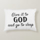 Idén och tröttandet av svart och vitt kristet dekorativ kudde med uppmuntrande text om bön, "Ge till Gud och gå och sova". Bakgrunden färg är vit men är anpassade till valfritt färg du väljer med Zazzle verktyg. Kontakta oss för hjälp med anpassning.