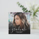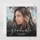 Class of 2026! A simple black and white graduation invitation with a large photo front and elegant script “graduate” lettering across the image. The clean square layout keeps the focus on the portrait, while the back features two photos and classic, easy-to-read event details. It’s a timeless option that works beautifully for both high school seniors and college graduates. All text and photos are fully editable to match your celebration.