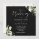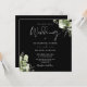 Black White Greenery Monogram Square Bröllop Inbjudningar