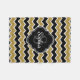 Snyggt, trendig svart, vit och faux guld chevron zigzag mönster med en quatrefolieetikett ram överst med en anpassade som första modell för brev och glitter.