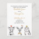 Din lilla baby är på väg! Inbjudan era speciella gäster med detta välbetänkta vykort med hand plockade-skogsdjur i svartvitt. Baby, "Turning One" och datumet står i gult guld-handskrivet manustypografi och personlig i en chic modern svart sans serif. Copyright Elegant Inbjudan, alla höger reserverade.