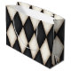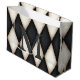 This elegant custom gift bag has a large monogram on a background of a black and antique white Harlequin pattern. A trompe l'oeil effect makes the monogram appear 3-dimensional.