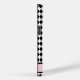 Detta monogrammade fodral har en snurrig svart-vita harlequin mönster med en underbar blomkett, inklusive ro och en guld. Ditt namn skrivs ut i svart skript över ett simulerat färgband för rosa som trimmas i svart. Skriv ditt namn i avsnittet Personlig och det skrivs ut på designen.