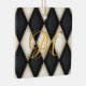 Black & White Herlequin Faux Antique Monogrammed Julgransprydnad Keramik