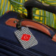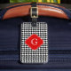 Black White Houndstooth Red Quatrefoil Monogram Bagagebricka