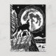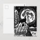Black & White Howling Husky på Night Linocut Vykort