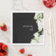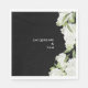 Svart med vit Hydrangeas Bröllop napkin. Vit typografi. Modern design och typsnitt. Elegant. Svartvit. Födelsedag.