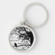 Black & White Ickmore Raven Silhouette Träd Rund Silverfärgad Nyckelring