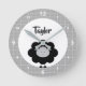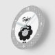 Black White Lamb Kawaii Kid Nursery Script Namn Rund Klocka