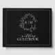 Black White Leafy Vapensköld Monogram Bröllop Gästböcker