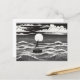 Black & White Lonely Sailboat Moon Waves Vykort