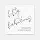 “Fifty and fabulous.” Own it and usher in 50 with style! Using this sophisticated minimal 50th birthday personalized paper napkin will help make her birthday a party to remember. Dramatic black handwriting script calligraphy and simple sans serif typography overlay a clean, white background. Personalize with her name. Your choice of 3 sizes: cocktail, luncheon, & dinner. Order a different size for each course of your celebratory meal! Matching and coordinating invitations, envelopes, labels, paper plates and other party supplies are also available.