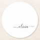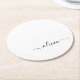 Black White Modern Script Girly Monogram Namn Underlägg Papper Rund