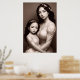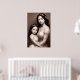 En svart och vit porträtt av mor och dotter med långt svart hår där båda bär en vit klänning. Det här är en AI-skapad konst.