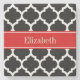 Black White Moroccan #5 Red Namn Monogram Underlägg Sten