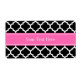 Black and White Moroccan Quatrefoil Trellis Mönster #5, Shock rosa #2 Ribbon Namn Monogram-etikett Anpassa detta med ditt namn, monogram eller annan text. Du kan också ändra teckensnittet, justera teckensnittet storlekt och teckensnittet färg, flytta texten, lägga till ytterligare fält osv. Observera att detta är en digitalt skapat grafikdesign som överförs till den underliggande produkten. Själva designen innehåller inte egentligt menyfliksområde, etiketter, metall, prägling osv.