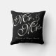 Personlig Black and White Mr och Mrs Bröllop Pillow. Utformning av Elke Clarke©. Finns på www.zazzle.com/monogramgallery. Klassy, personlig, anpassningsbar färg svart bakgrund, anpassade med brud och groom namn i vitt skript och bröllop datum. Fin design är perfekt för bröllopsgåvor, honungskuddar, julklappar i bröllop och mycket annat. Redigera-menyn för använda om du vill ändra färger eller besöka vår butik om du vill ha fler alternativ för design och färg.