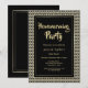En inbjudan till en svart, vit och guld-inramad husuppvärmningspartiet.