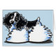 Originalillustration av en svart och vit parti färg Cocker spanel av Off-Leash Art. Cute för barn and vuxnas och ger en unik gåva.