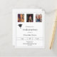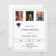 A modern and stylish black and white invitation for a graduation party. Add 3 photos. Decorated with a black graduation cap. Personalize and add a name and the details.
