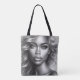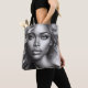 A beautiful photo-like 'pencil drawing' of a woman is on the front and back of this reusable shopping bag/tote bag.