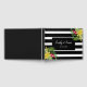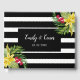 Elegant, svart och vitt geometriskt rand och gult och rött exotiskt blomma