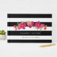 Romantic Fuchsia Blommigt Watercolor Painting with Black & White rand mönster bakgrundsfärg Personlig Bröllop Guest Bok. Matchande bröllopsinbjudningar, Spara datumkort, Bridesmaid som begärandekort, tackkort, bröllopsfavoriter och presenter som finns tillgängliga i Blommigtens designkategori i vår butik.
