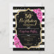 Femininininbjudan till elegantens blommigt på 50 års födelsedag med ditt foto på baksidan av kortet. Glam svartvit rosa design med faux glitter guld. Innehåller svart och vitt rand, rosa ros, skript och konetti. Perfekt för en snyggt vuxen under firande party. Anpassa med dina egna detaljer. Kan anpassas för vilken ålder som helst! Skrivna Zazzle-inbjudningar eller digital utskrivbar mall för omedelbar nedladdning.