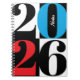 Artful and bold, this personalized spiral notebook features bold graphics in black and white plus accent colors in large Arabic numerals to denote the year and one area of text for personalization with the notebook's use (notes, planner, school, a name, etc.). The design of modern bold blocks and black and white plus accents of cyan blue and bright red brings a fearless vibe with you into the new year, get ready to make it the best one yet!